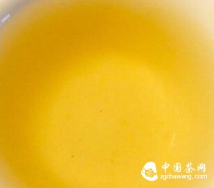 福建乌龙茶之水色通常比较深红,即接近红茶水色,以深橙红为标准色。产自高山之陈茶,水色甚至红而近褐色;台湾乌龙茶之水色,则以明澈鲜丽之橙红为佳。高级茶水色则呈琥珀般之橙红色。中级茶其水色红度稍深。陈茶之水色亦渐近红茶之汤色。其中当以台湾高级乌龙茶琥珀般橙红色最具特色,亦即消费市场最受欢迎之茶汤颜色也。