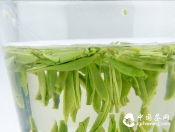 4、看茶叶的汤色:茶叶冲泡后,新茶颜色明亮,陈茶颜色发暗;如果茶水颜色碧绿,而且泡了几次后仍是碧绿色,这种茶叶就很可能是“染色茶”或“翻新茶”。