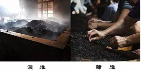让茶叶加温多长时间,就是渥堆的程度,是熟普生产的最关键环节,一般好点的茶叶,是不可以搞太熟的,要留一点发展的空间给它,如果茶叶是些普通台地茶,茶梗多,叶子不肥厚,那么就要发得熟些,让它喝起来没那么苦。